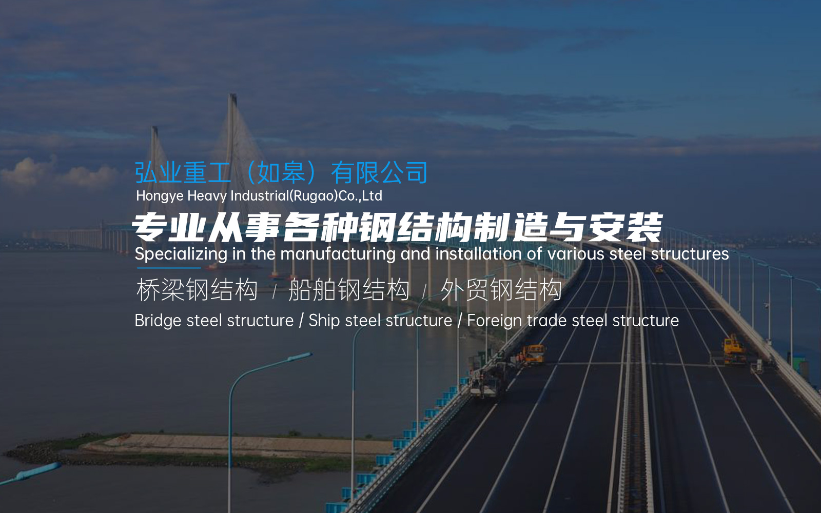 南通弘業(yè)重工有限公司是一家以橋梁鋼結(jié)構(gòu)、船舶鋼結(jié)構(gòu)、外貿(mào)鋼結(jié)構(gòu)制作為主的有限責(zé)任公司。公司坐落在風(fēng)景秀麗、人文薈萃、物產(chǎn)豐富的江海之濱一中國(guó)近代第一城江蘇南通市。公司由董事長(zhǎng)嚴(yán)祥于2015年3月創(chuàng)建,注冊(cè)資本3180萬(wàn)元整。生產(chǎn)基地位于如皋市如皋港熔盛重工廠區(qū)內(nèi),現(xiàn)年總生產(chǎn)量達(dá)15萬(wàn)噸。在激烈的市場(chǎng)競(jìng)爭(zhēng)中“以誠(chéng)信待人、以質(zhì)量取勝、以信譽(yù)為本”為企業(yè)宗旨,基于此前的良好市場(chǎng)口碑、豐富的鋼結(jié)構(gòu)制造經(jīng)驗(yàn)和專(zhuān)業(yè)技術(shù),從事各種鋼結(jié)構(gòu)制造與安裝,并以?xún)?yōu)秀品質(zhì)成功交付多項(xiàng)產(chǎn)品,在重工行業(yè)得到了客戶的廣泛認(rèn)可,獲得了較高的市場(chǎng)信譽(yù)。Nantong Hongye Heavy Industry Co., Ltd. is a limited liability company mainly engaged in the manufacture of bridge steel structures,ship steel structures and foreign trade steel structure production. The company is located in Nantong City,Jiangsu Province, the first city in modern China with beautiful scenery, cultural gatherings and rich products. The company was founded by Chairman Yan Xiang in March 2015 with a registered capital of 8.31million yuan.The production base is located in the Rongsheng Heavy Factory in Rugao Port,Rugao City.The total annual production capacity is about 150,000 tons.In the fierce market competition, ?treat people with integrity, win with quality, and take credit asthe foundation? isthe corporate tenet. Based on the previous good market reputation,rich experience and professional technology in steel structure manufacturing, we are engaged in the manufacture and installation of various steel structures,and have successfully delivered a number of products with excellent quality, which have been widely recognized by customers in the heavy industry industrial field and won a high market reputation…